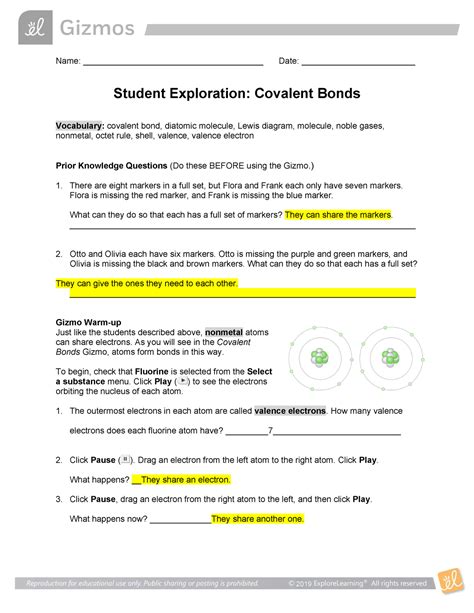 Read Gizmo Covalent Bonds Answer Key Doc
