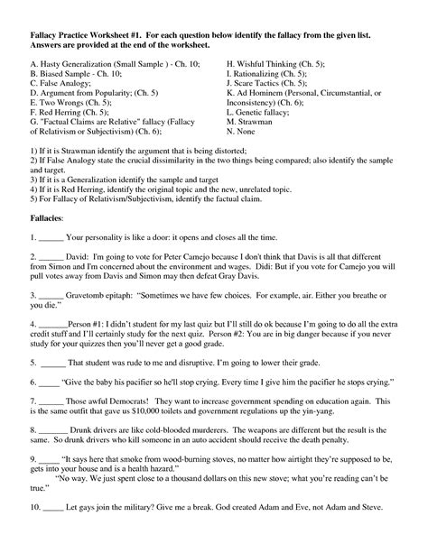 Download Logical Fallacies Worksheet With Answers Kindle Editon